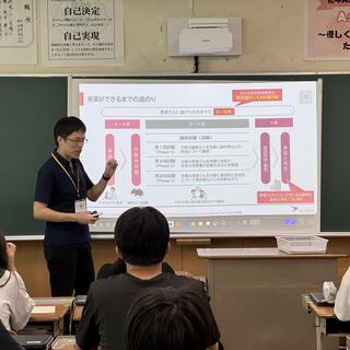 実際の業務に携わる方の視点や体験談を通じて、仕事に対する理解を深める内容でした。生徒からはメディアで見聞きしたことのある「遺伝子改変ベイビー」に関する質問や、病気の根源的な理由に関する科学的な質問を行うなど、普段持っていた疑問を専門家に質問しながら議論を深める時間となりました。