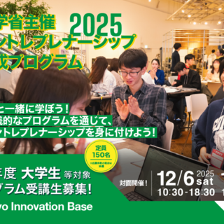 2025年12月6-7日の二日間、文科省が主催する全国アントレプレナーシップ人材育成プログラムが開催されます。本プログラムは、社会課題の解決やビジネスでの起業など、新しいことへの挑戦や行動する際に役立つアントレプレナーシップを体感してもらうのが狙いです。