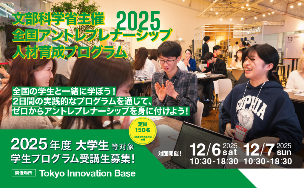 【お知らせ】全国アントレプレナーシップ人材育成プログラム 参加者募集が始まりました(12/6ー7開催)